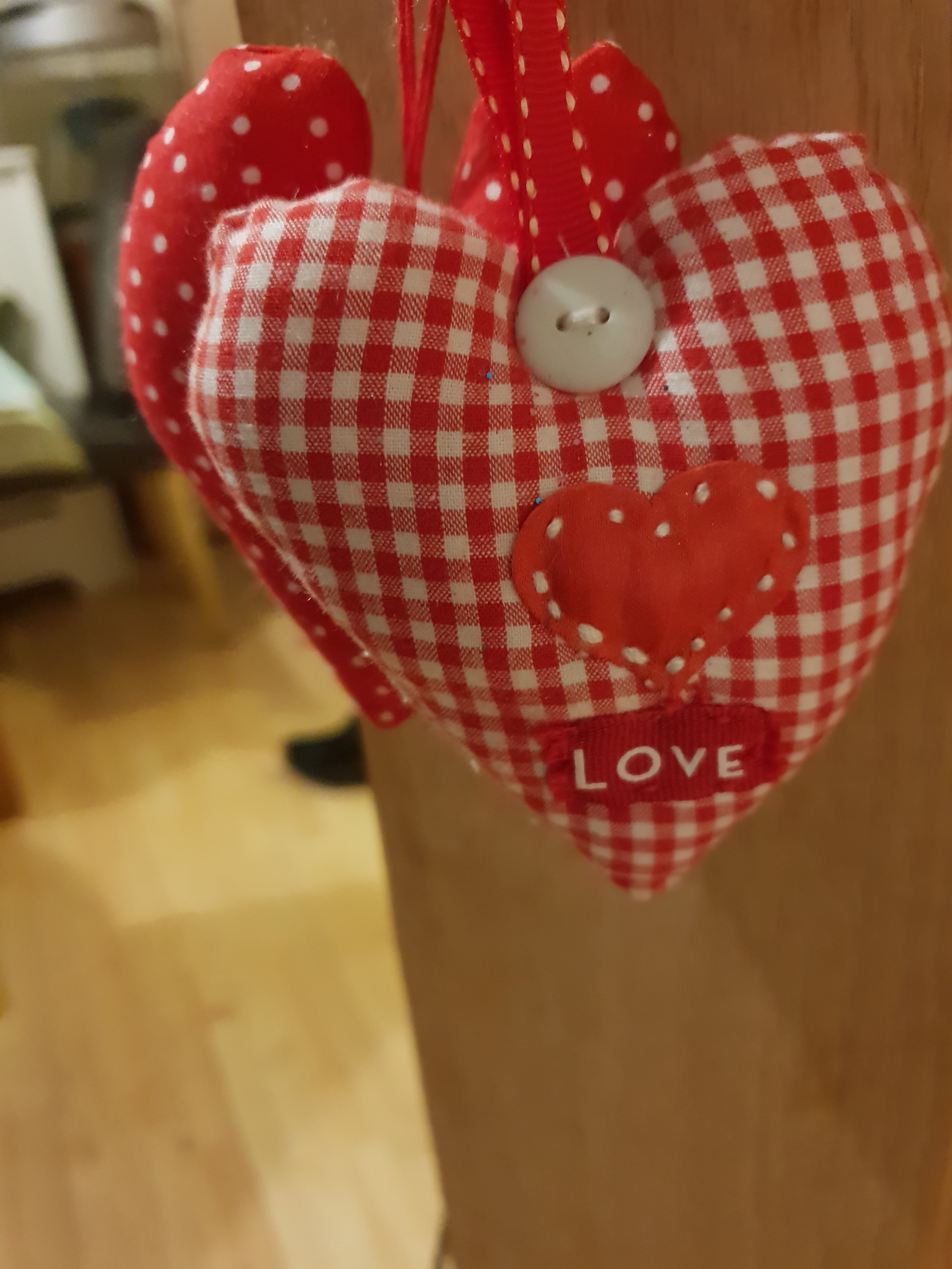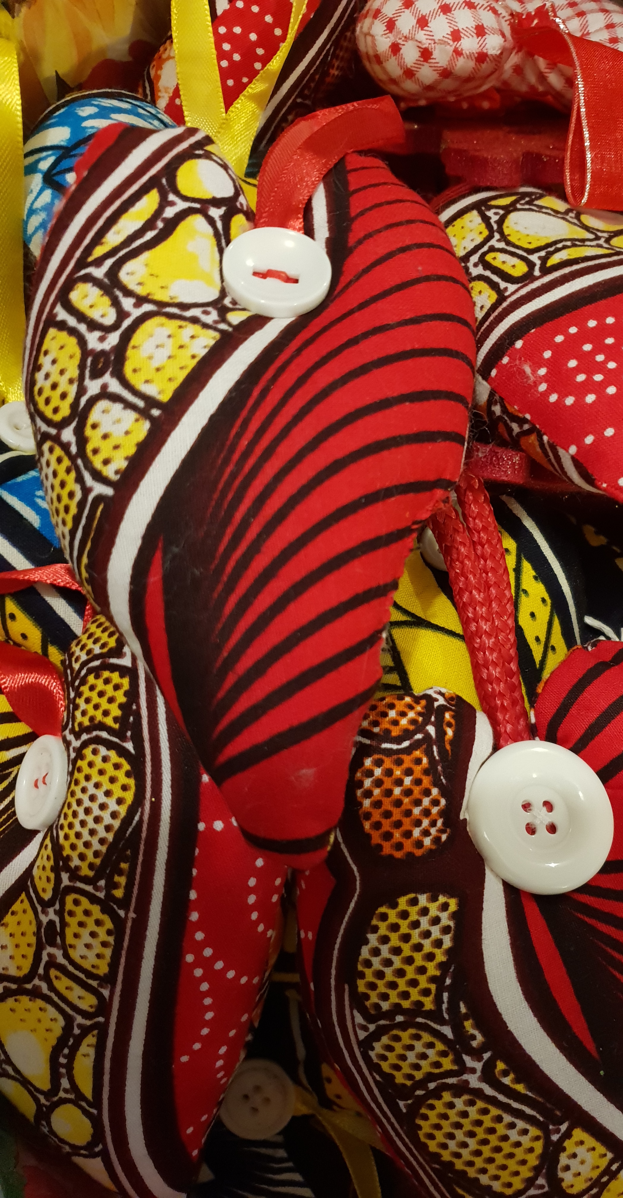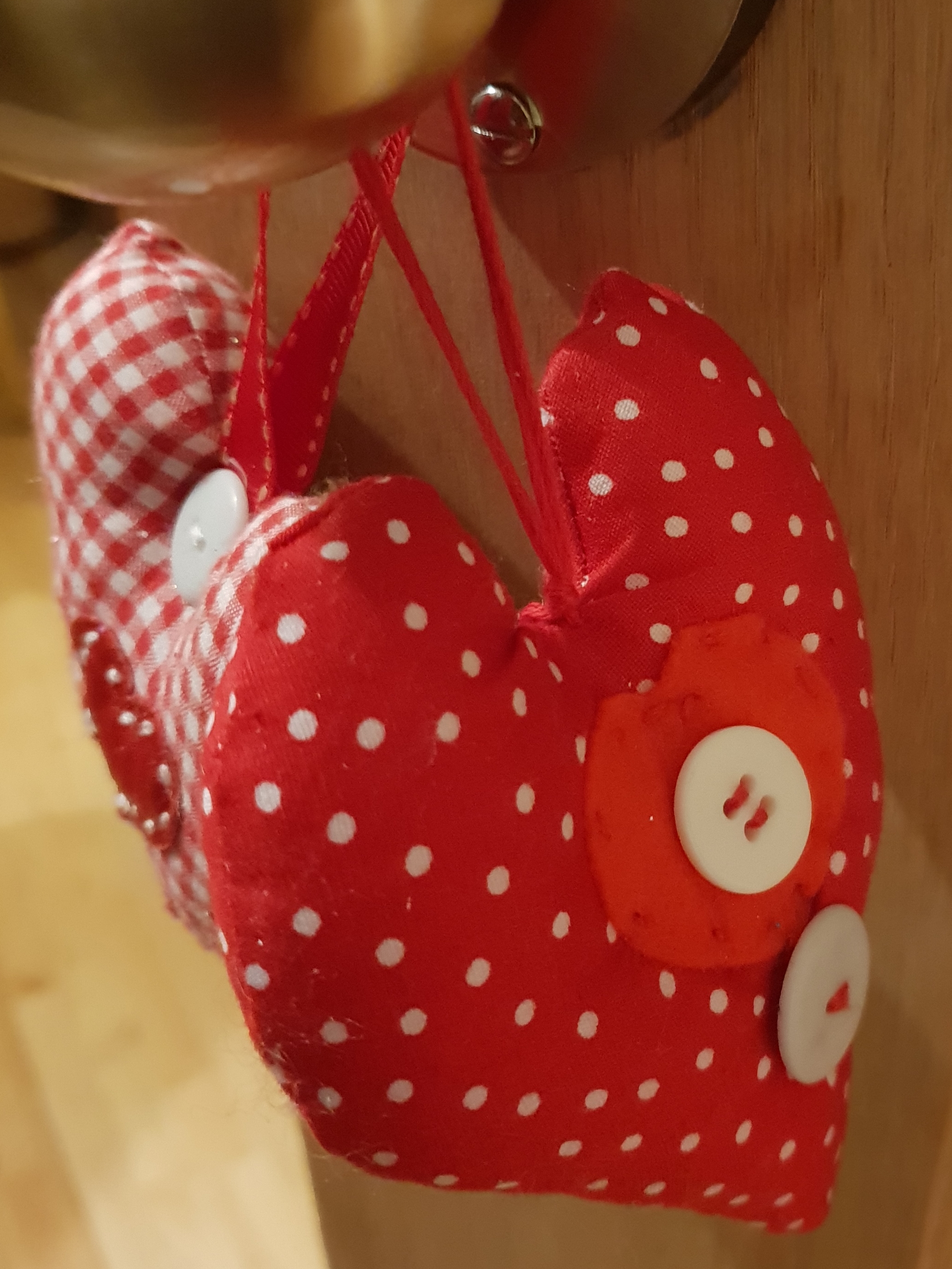 I started making fabric hearts about 10 years ago for my first Craft Fayre. From the very beginning I added buttons and coloured ribbon because they helped the product to look finished. Experimenting with I with different fabrics and sizes meant they could have a variety of purposes, such as pin cushions, tree decorations and cushions.