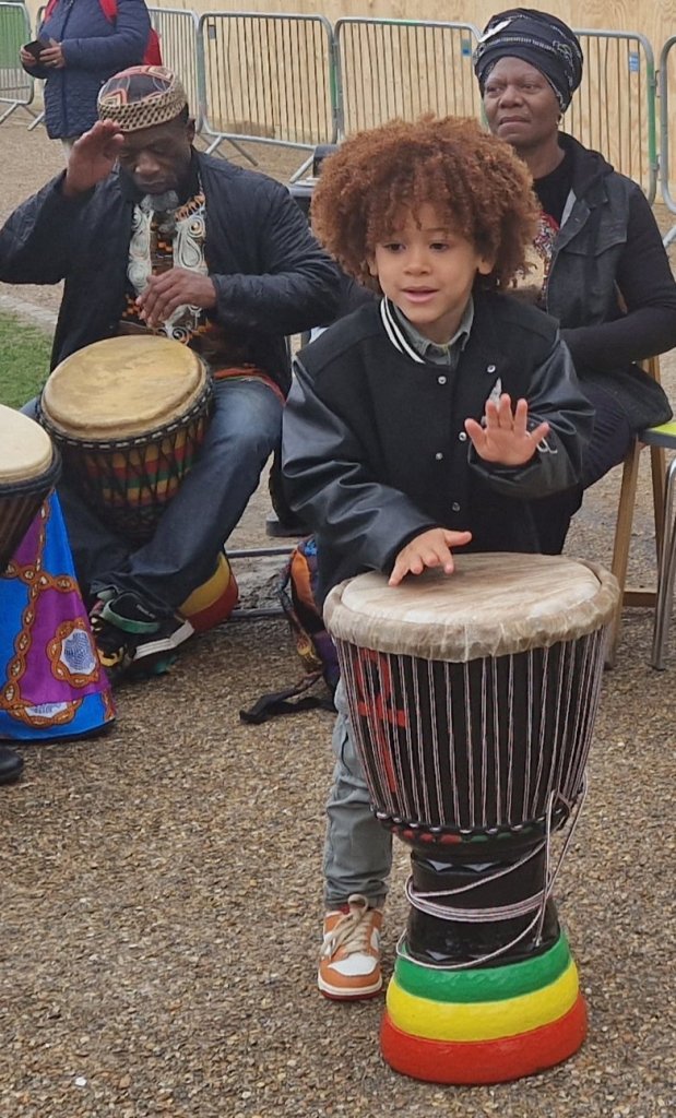 Celebrating my heritage at the Maritime Museum felt surreal. I’ve visited the museum on school trips, taken my daughter and nieces on day trips, and created arts and crafts. But today, I felt different from entering from the carpark. I could see globes on the grass, and I could hear the drums tapping out their rhythms and the songs. Headwraps and national dress in abundance. Families every shade of brown, young and old sharing the same space.
